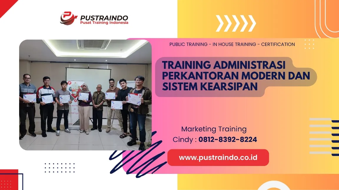 Training Administrasi Perkantoran Modern dan Sistem Kearsipan menjadi sangat penting bagi profesional, pegawai, dan aparatur yang terlibat dalam pengelolaan administrasi organisasi maupun instansi. Di era digital dan modernisasi birokrasi, administrasi perkantoran tidak lagi sekadar pencatatan manual, tetapi menuntut efisiensi, akurasi, dan keamanan data yang terintegrasi. Melalui training ini, peserta dibekali keterampilan dalam mengelola dokumen, surat-menyurat, jadwal kerja, serta memanfaatkan teknologi digital untuk mempercepat proses administrasi. Selain itu, sistem kearsipan modern yang efektif membantu menjaga validitas, kemudahan akses, dan keamanan dokumen penting organisasi, sehingga informasi dapat dikelola secara sistematis dan dapat dipertanggungjawabkan. Dengan kompetensi ini, peserta mampu meningkatkan produktivitas, meminimalkan kesalahan administrasi, serta mendukung pengambilan keputusan yang cepat dan tepat. Training ini juga mendorong terciptanya lingkungan kerja yang tertib, profesional, dan berbasis teknologi, sehingga administrasi perkantoran dan pengelolaan arsip tidak hanya menjadi kewajiban rutin, tetapi juga menjadi kekuatan strategis dalam menunjang kinerja organisasi dan pelayanan publik yang berkualitas.
